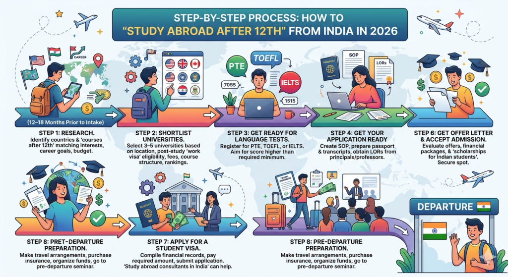 Step-by-Step Process: How to “Study Abroad After 12th” from India in 2026