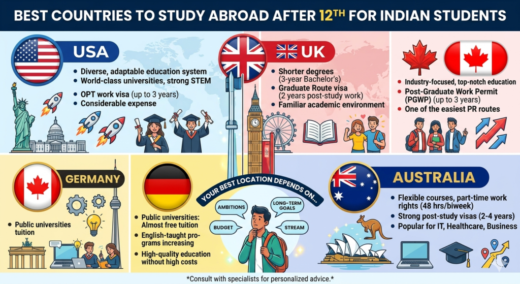 Country-Wise Comparison Table: “Study Abroad After 12th” 2026